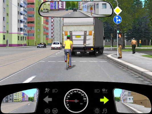 Nach dem Abbiegen des Lkw können Fußgänger von der gegenüber liegenden Seite kommen